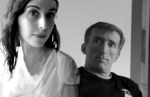 A comparison of Valve lead animator Bill Fletcher and Valve visual designer Laura Dubuk and their in-game likenesses of Cave Johnson and Caroline.